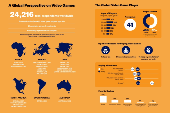 报告还显示,60%的成年人每周至少玩一次游戏,同时有36%年龄超过80岁的老年人也参与游戏活动,这进一步证实电子游戏正成为跨越年龄界限的普遍爱好。目前全球玩家总数已突破30亿人,且这一数字仍在持续增长。