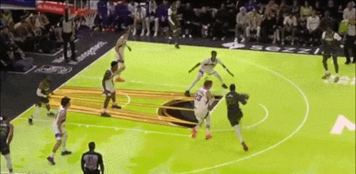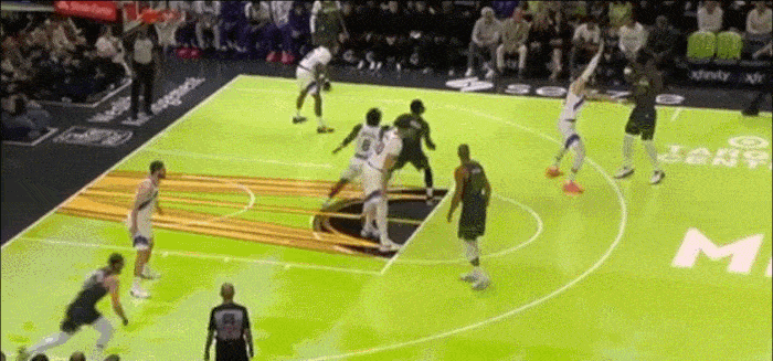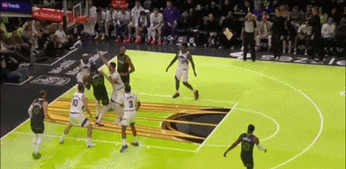 抢完篮板后 之前会直接在篮下撞开空间 现在从夹缝中看到爱德华兹