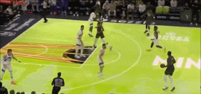 半转换进攻 兰德尔现在通常会持球过半场 给到爱德华兹三分