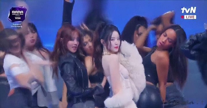 组合I-DLE成员MINNIE在“2025 MAMA Awards”舞台上脚踝受伤。