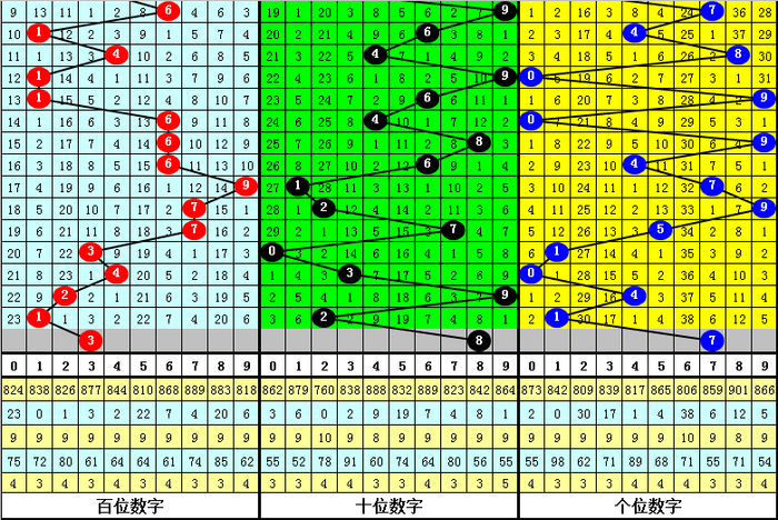 在历史同期号码中,组选0-9号码出现次数为:1出现3次,号码0、6出现4次,号码5、7出现5次,号码2、9出现7次,号码3出现8次,号码4出现9次,号码8出现14次,本期看好两码3、7出现。