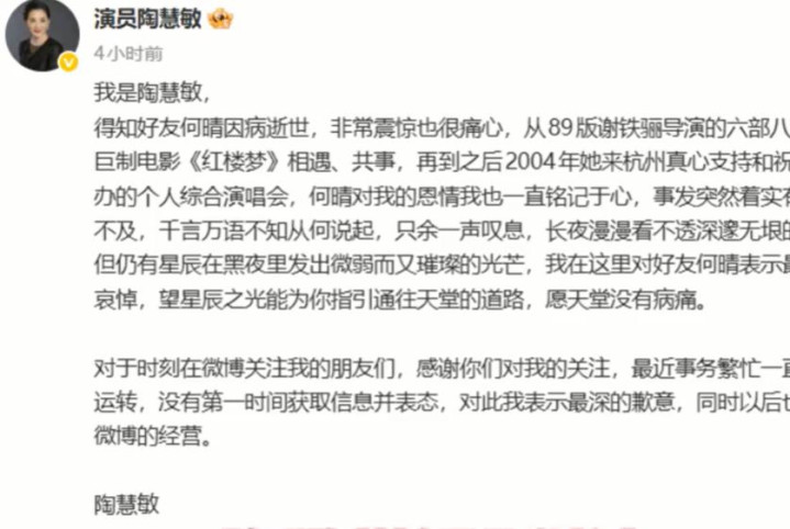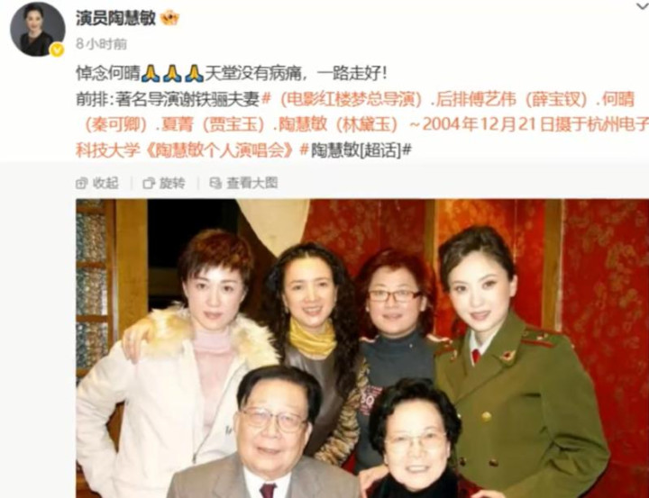 影版《红楼梦》里林黛玉的扮演者陶慧敏所表达的悼念,格外引人瞩目。