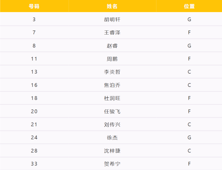 本届队伍广泛吸纳了多支球队的精兵强将,将在主教练杜锋的带领下,在“家门口”凝心聚力,向目标发起冲击。