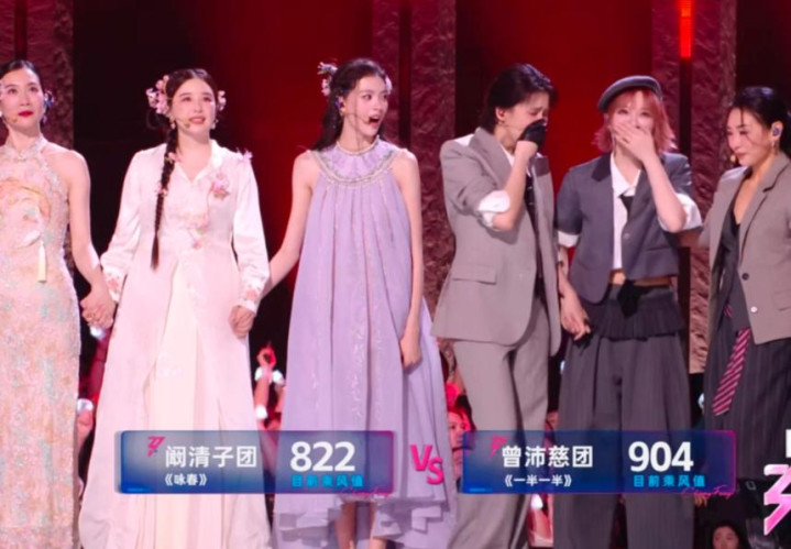 反观同场的孙怡组,孙怡、张慧雯、赵子琪三人全开麦真唱,哪怕有细微的气息不稳,也比这种敷衍的假唱更有诚意。
