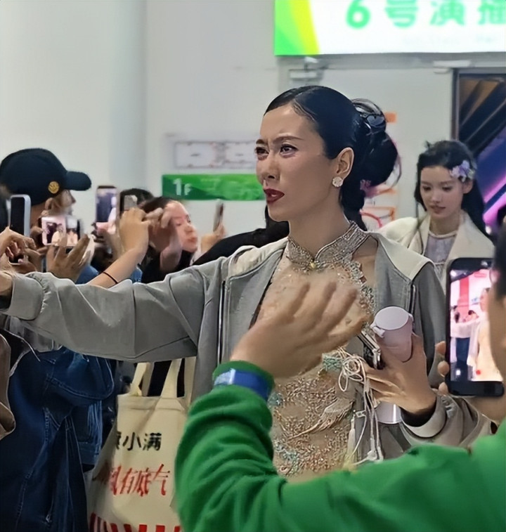 有现场观众拍到,她眼睛红肿得像核桃,声音哽咽,连身子都在因为哭泣而发抖,脸上的妆容被泪水晕开,狼狈不堪。