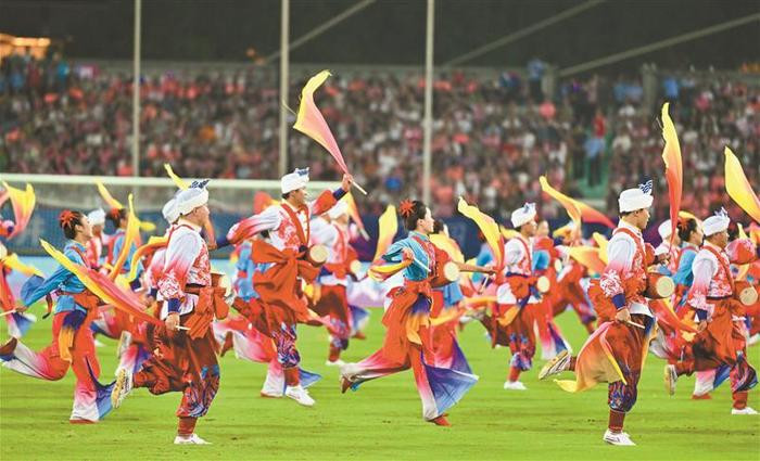这震撼人心的表演背后,是演职人员近一个月的日夜坚守与不懈付出。郭延伟透露,从8月中旬开始,一百多名演职人员便开启了高强度集训。排练期间,多名演员虽然因提升技能受了伤,但他们咬紧牙关坚持到最后,“安塞腰鼓助威‘苏超’无锡主场表演,将更好带动延安文化在江苏一带的传播,让国家级非遗安塞腰鼓以及陕北民歌走向全国更多城市。”