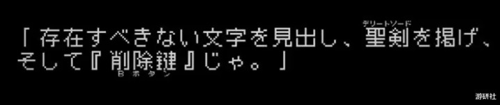 像是游戏里可以删除文字的关键道具“贝克斯贝斯(Back Space)之剑”。如果意译为“削字之剣”,黄政凯认为多少有些俗气,但如果仿照原作的处理方式,通过片假名模仿读音,感觉又显得过于洋气了。