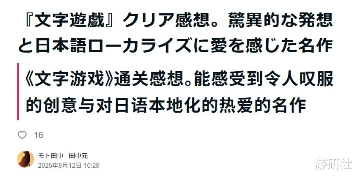8月份的时候,日本游戏媒体《電ファミ》刊载了一篇关于《文字游戏》的日语本地化采访文章。在标题处,他们直接用上了“不可能翻译”“奇迹”等字样。